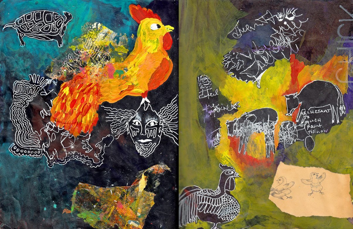 Hey Brian, I love using black gesso too. This spread definately calls to me. Can you tell me more about the brand of acrylic paint you used? Thanks.