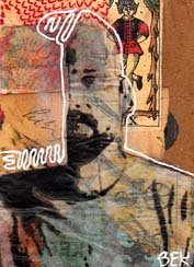 Vintage and personal papers, matte medium, tracing paper transfer, Sigano white gel pen.