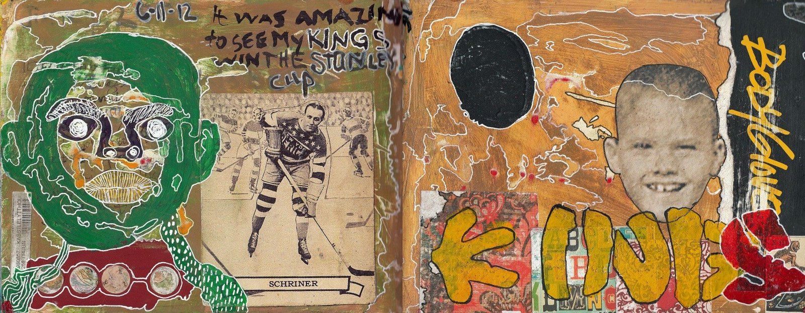 Vintage and personal papers, acrylic paint, Sigano gel pen, gel pens, black gesso.
