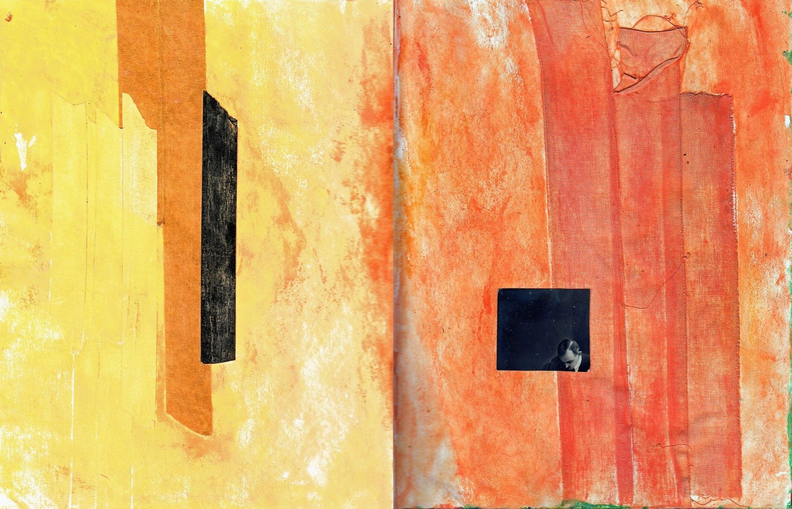 Brian, it was so fun to set next to you while you did this piece. The balance of this spread is amazing. It sure was fun trying out surgical tape. Great color, too!