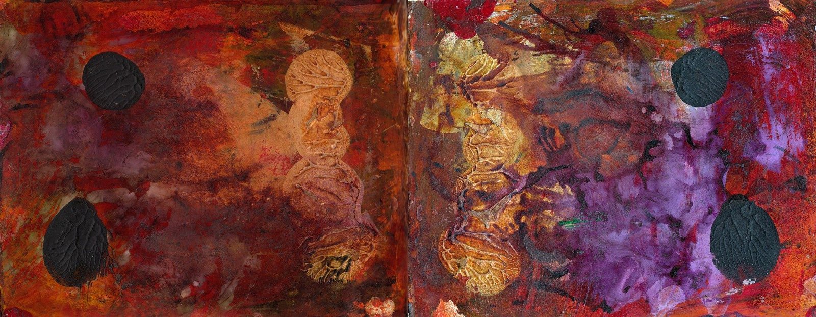 I feel heated by your work. For some reason I feel like I am looking at the colors of an oil spill on the driveway. The purple is so lush with the mixture of reds. Or it is like the palette exploded and is just in an uproar. Really excellent!