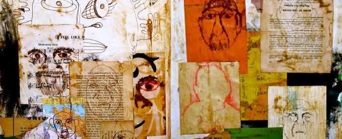 Spread 0076 - Graffiti Journal - The Last Page. Vintage and personal papers and images, Acrylic paint, black and white gesso. Tim Holtz Ink, Liquitex Gloss Medium Varnish. 15 April 2012 The last page of a journal gives me mixed feelings, happiness, sadness, accomplishment and excitement for the next journal and the next spread. To [...]